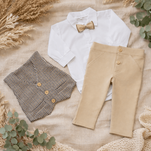 Komplet jest idealnym wyborem na różnorodne uroczystości, dodając maluszkowi elegancji i stylu.