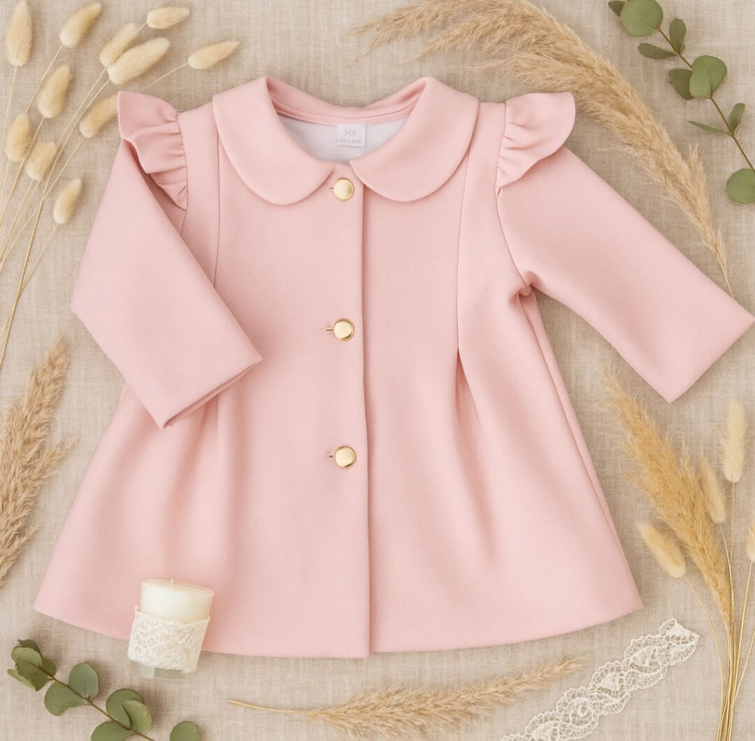 Płaszcz flauszowy do chrztu dla dziewczynki róż
