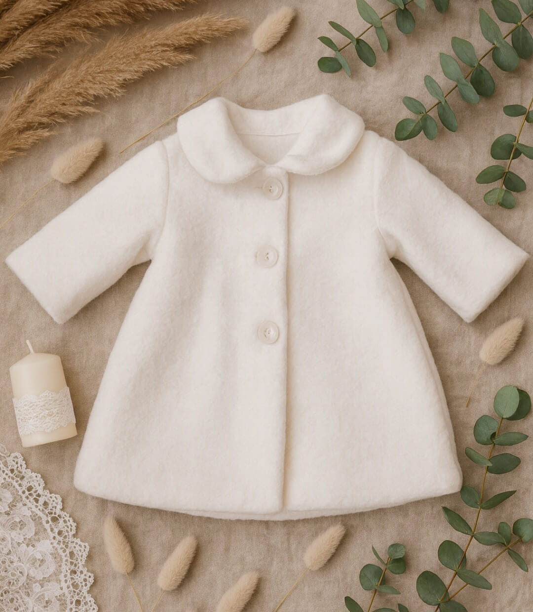 Ciepły płaszczyk dla dziewczynki w kolorze ecru.